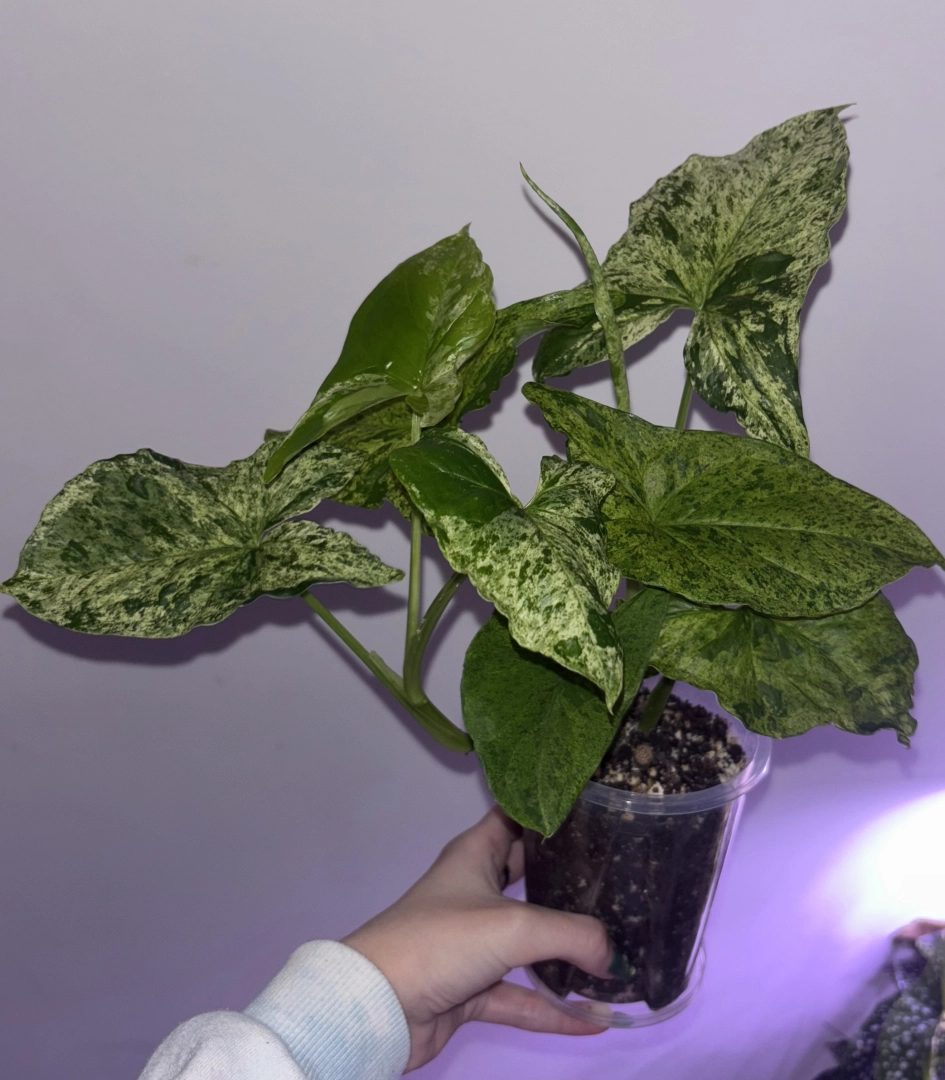 Plantes d'intérieurLe Syngonium Mottled a des feuilles inhabituelles. Les feuilles sont vertes avec une couleur argentée/blanche. La forme des feuilles change avec le temps. C'est une plante d'intérieur à croissance rapide et elle est originaire d'Amérique centrale.